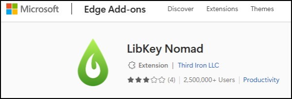 1. Open the LibKey extension page in the Microsoft store: |
