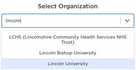 7. Select organization – search for Lincoln University in the drop-down menu: |